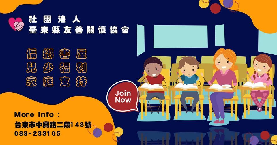 社團法人臺東縣友善關懷協會秉持初衷,幫助需要協助的孩童及長輩,運用社會工作專業方法,提供妥適照顧,以「陪伴關懷,分享溫暖」在台東偏鄉設立陪伴書屋、關懷據點及樂智據點,協助孩子們完成學力,照顧獨居長者,陪伴孩子讀書,適性啟迪引導,營造多元學習環境,孕育孩子們的潛能發展與茁壯的未來,做為持續向前邁進的目標,並且為需要幫助的弱勢族群帶來陽光、希望、愛與力量。