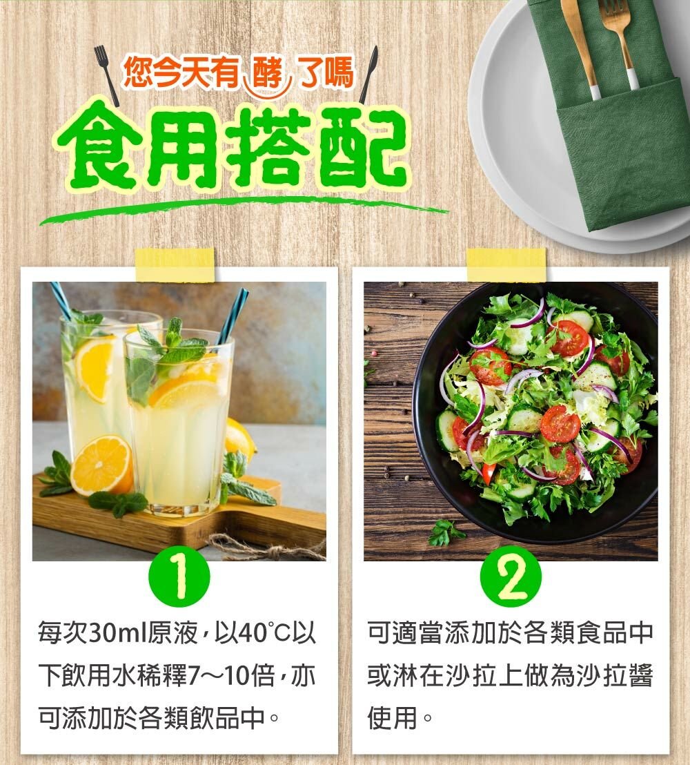 每次30ml原液,以40℃以下飲用水稀釋7~10倍,亦可添加於各類飲品中