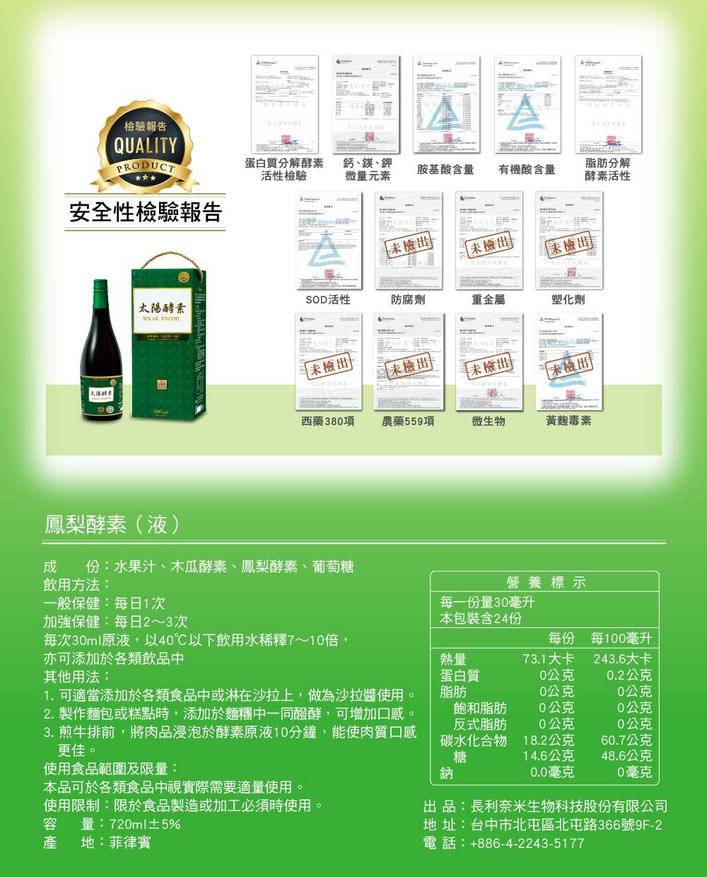 ☆經食品工業研究所及台灣生物技術開發中心檢驗具有高活性酵素,不含西藥、農藥、重金屬與塑化劑成分,擁有衛福部食品添加物許可證!