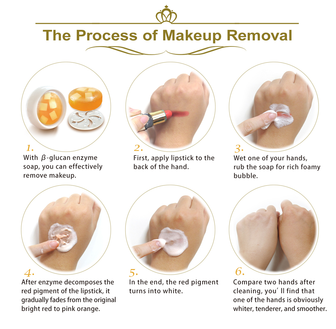 ²It proves that enzyme soaps not only can effectively remove lipstick, but helps skin regain its radiance. Above all, natural enzyme and beta-glucan will not cause any damage and burden to the skin.