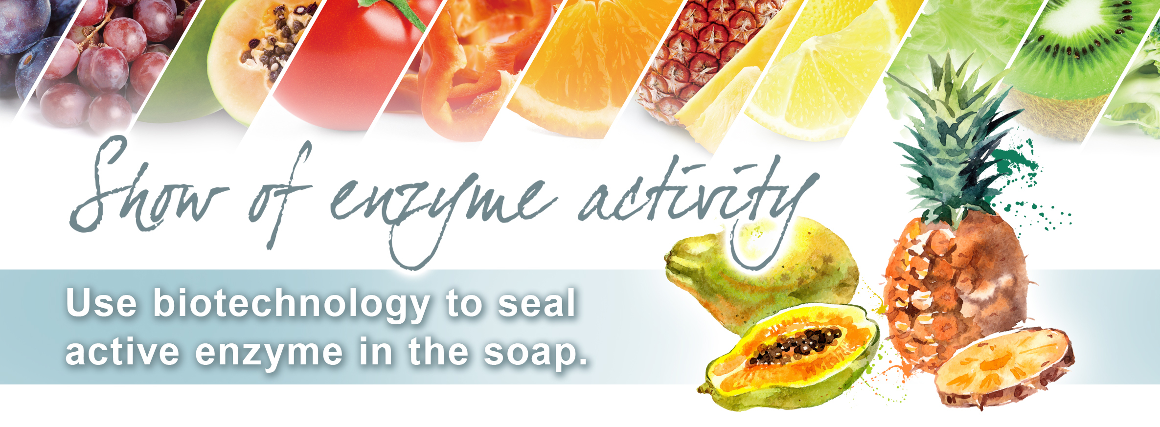 Rich in fruit enzyme. Enzyme soaps are able to remove dirt, chemical substances, pore obstruction, and light make-up thoroughly.